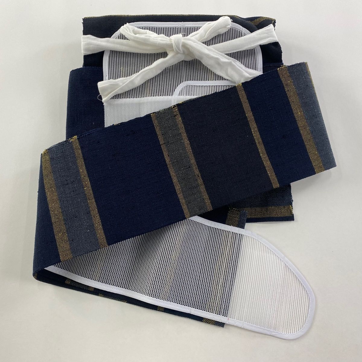 付け帯 秀品 紬地 作り帯 縞模様 濃紺 正絹