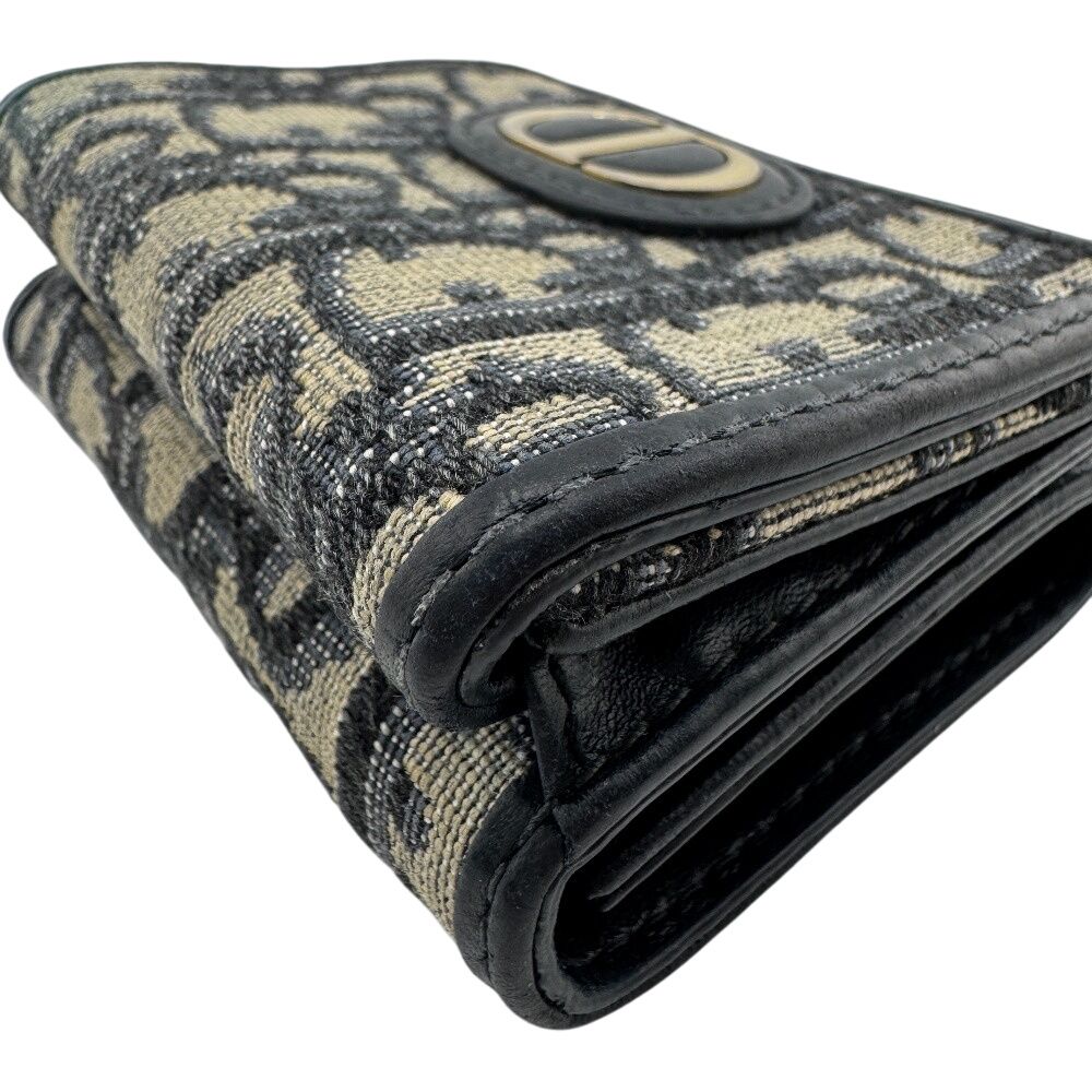 5%OFF フォロワークーポン Christian Dior クリスチャンディオール ロゴプレート トロッター 三つ折り財布 財布 ウォレット ブランド 小銭入れ 札 ネイビー レディース