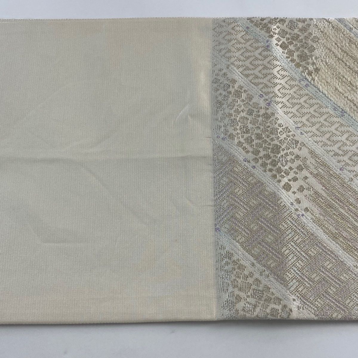 袋帯 秀品 斜縞 幾何学 箔 ベージュ 六通 正絹