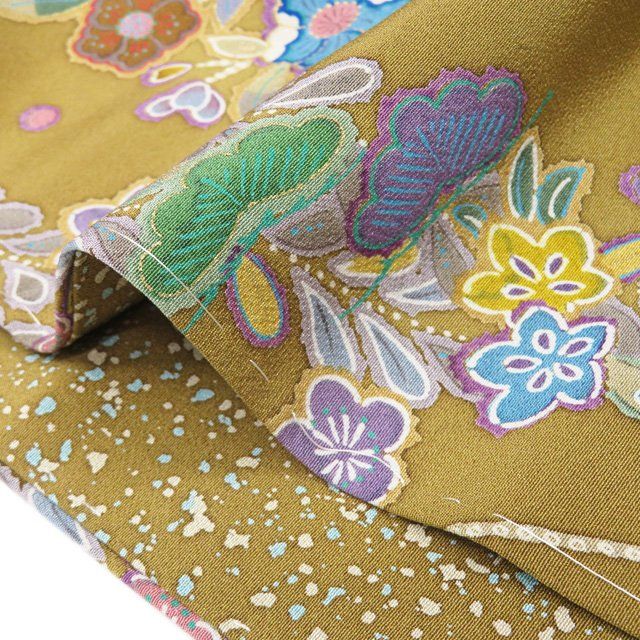 小紋 着物 正絹 袷 カジュアル 花模様 辻が花模様 桑茶色 多色 身丈167 cm 裄67 L トール きもの北條 A 1282-8