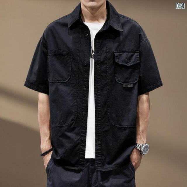 L 秋冬 コーデ メンズ 服 シンプル ファッション オシャレ 大人 かっこいい 大きいサイズ ストリート 紳士服 アメリカン ヘビー ミリタリーグリーン ワークウェア 半袖 シャツ カジュアル ジャケット