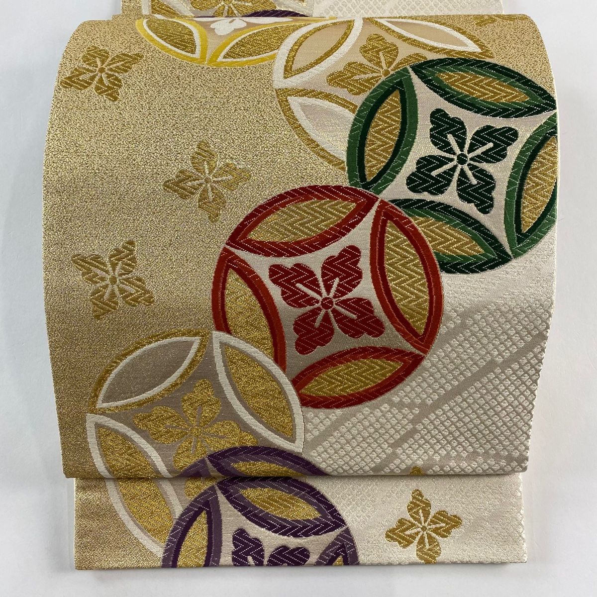 袋帯 秀品 落款 寛永 ますいわ屋 七宝 花菱 金糸 唐織 金色 六通 正絹