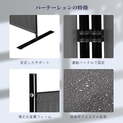 組み立て簡単:全体サイズ:高さ182 cm×幅305 cm。カラー:ブラック。おしゃれ衝立は防水生地でできており、お手入れも簡単です。取り付けも簡単で、1人で20分以内に部屋パーテーションを組み立てることができる。屏風についてご不明な点がございましたら、お気軽にお問い合わせください、弊社はできるだけ早く問題を解決するお手伝いをいたします
