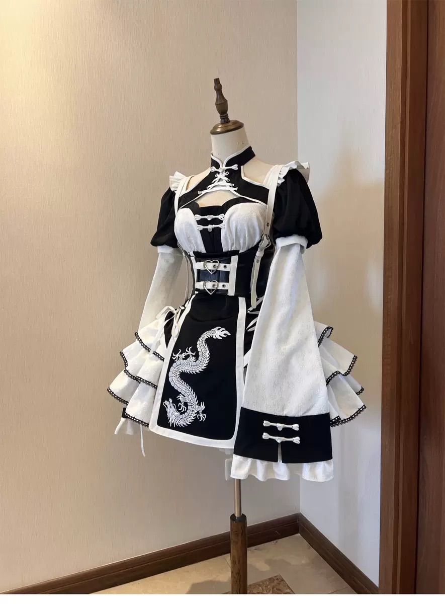 黒 ブラック 姫袖 チャイナ風 ロリィタ メイド セットアップ 地雷系 サブカル 地雷 パンク 量産型 サイバー y 2 k 原宿 渋谷 推し活 病みかわ かわいい ゆったり ガーリー系 バイオエンジェル ロリータ フリル 3 レトロ 和風