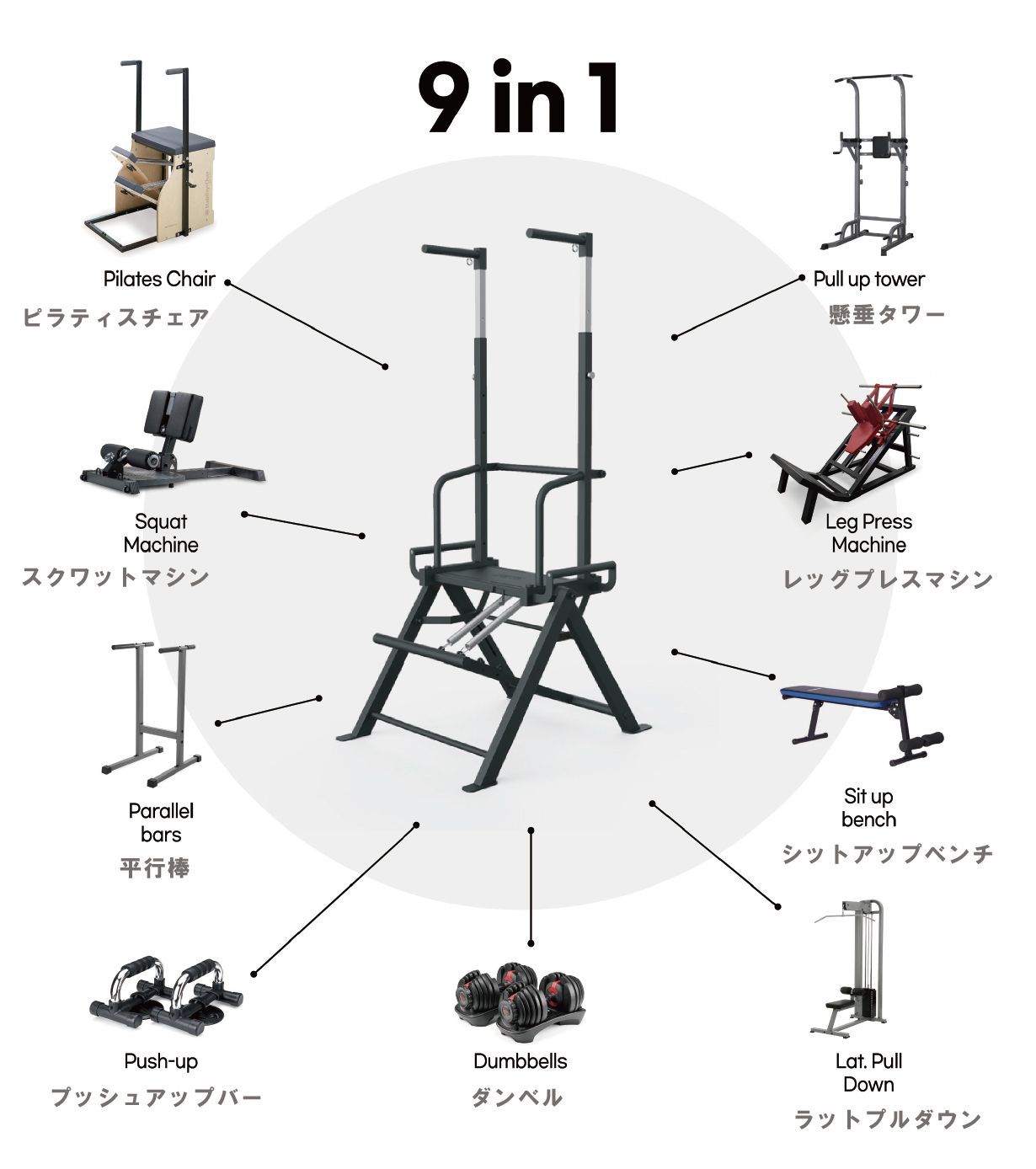 9つのジム機器を1つに凝縮