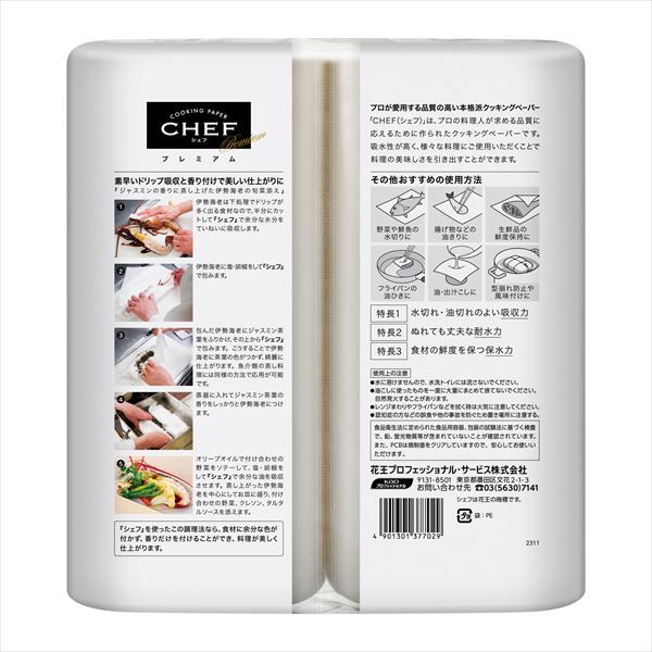 プロが愛用する品質の高いクッキングペーパー(不織布タイプ)です。プロの料理人が求める品質に応えるために作られたクッキングペーパーです。吸水性が高く、ぬれても破れにくいので様々な料理にご使用いただくことで料理の美味しさを引き出すことができます。